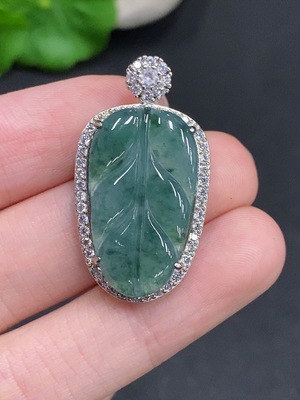 F35079246 Jadeite Leaf Pendant Non-Gold Inlaid Total Weight Approx. 5.1g