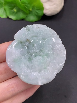 F27074525 Jadeite Flower of Wealth and Honor Pendant