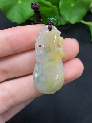 F35107718 Jadeite Auspicious Gourd Pendant (Total Weight Including Rope: Approx. 6.2g)