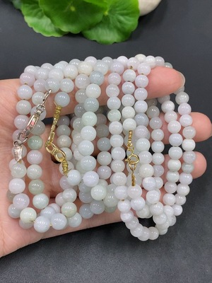F20263007 Jadeite Bead Necklace Approx. 6.4mm Non-Gold Inlaid