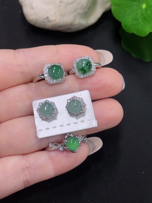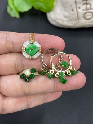 F38518423 Jadeite inlaid earrings ring pendant non-gold inlaid total weight about 8g