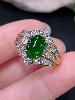 F39549718 Jadeite Ring 18k Gold Setting with Diamond, Total Weight Approx. 7.8g, Size 19