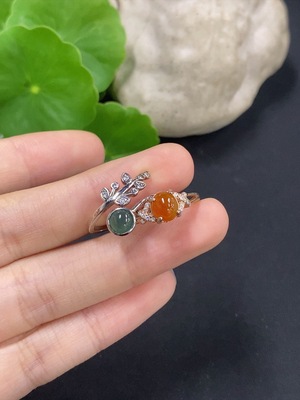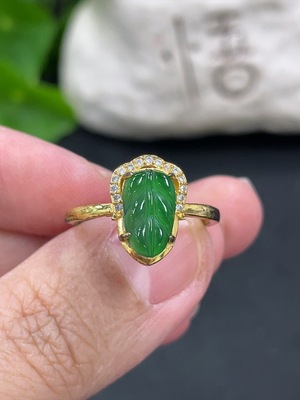 F40708982 Jadeite Leaf Inlaid Ring Non-Gold Inlaid Adjustable Size Total Weight Approx.1.61g