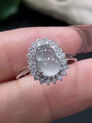 F27096966 Jadeite Gourd Inlaid Ring 18K Gold Size 15 Total Weight Approx. 1.79g With Diamond Accents