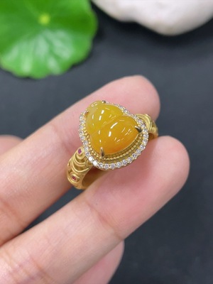 F38480373 Jadeite Gourd Inlaid Ring 18k Gold Total Weight Approx. 2.09g Size 13 With Diamond Accents