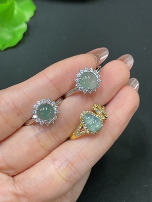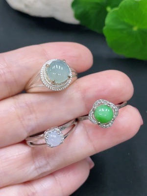 F36225170 Jadeite Cabochon Inlaid Ring Non-Gold Inlaid Adjustable Size