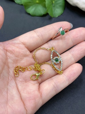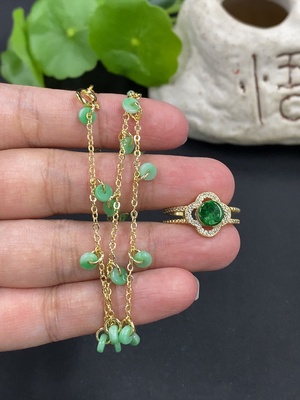 F38518421 Jadeite Inlaid Chain + Ring Non-Gold Inlay Total Weight Approx. 7g