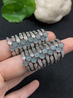 F3261081 Jadeite cabochon inlaid ring, some with grain cracks, adjustable, non-gold inlaid
