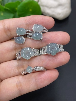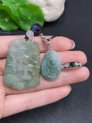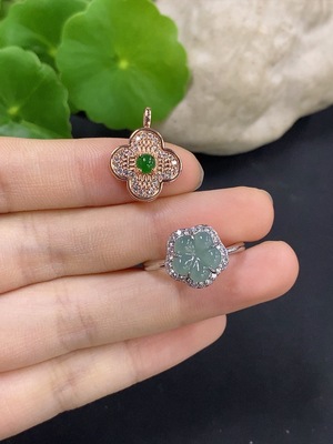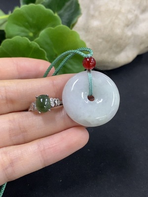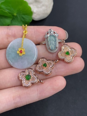 F1233507 Jadeite pendant with ring and pendant set, some with natural fissures, non-gold inlaid