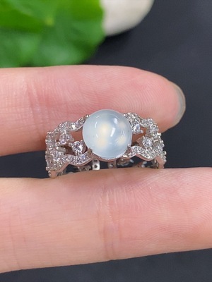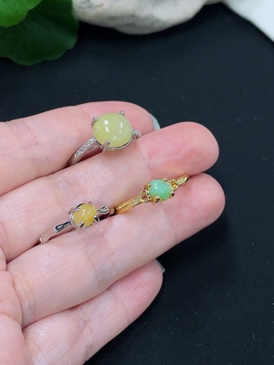 F38495865 Jadeite Cabochon Inlaid Ring Non-Gold Setting Adjustable