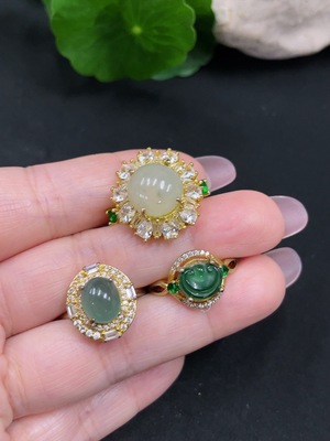 F38477860 Jadeite Inlaid Ring Non-Gold Sell as a Lot