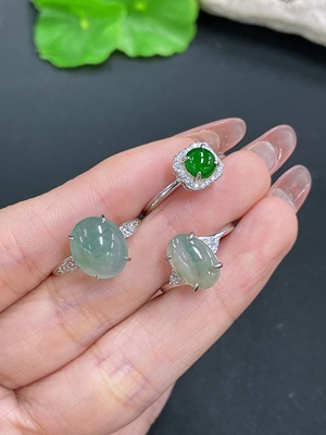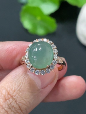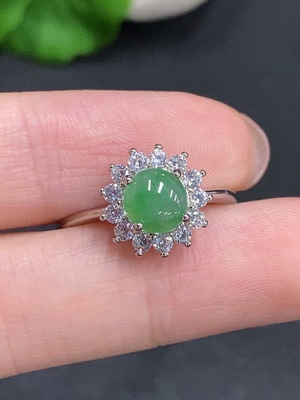 F38510317 Jadeite Cabochon Inlaid Ring Non-Gold Inlaid Adjustable Size