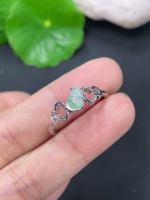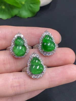F39618013 Jadeite Gourd Inlaid Ring Non-Gold Inlaid Adjustable Size Total Weight Approx. 1.53g