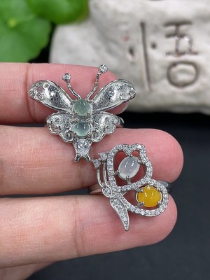 F13403295 Jadeite Inlaid Ring (Non-Gold Setting, Adjustable Band)