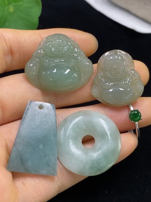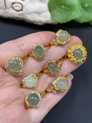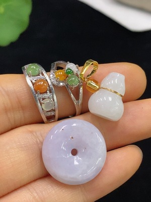 F35094988 Jadeite Cabochon Ring / Gourd Pendant / Pi An Kou Pendant Non-Gold Adjustable