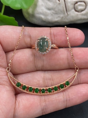 F38518950 Jadeite Cabochon Pendant + Ring Non-Gold Setting Adjustable Size