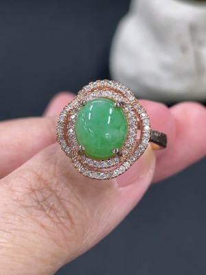F38495871 Jadeite Cabochon Inlaid Ring Non-Gold Setting Adjustable Size