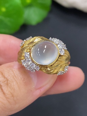 F37452307 Jadeite cabochon ring with 18K gold, size 13, total weight approximately 5.9g (accented with diamonds)