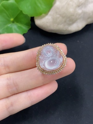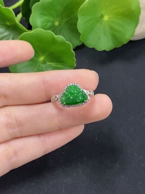 F39638746 Jadeite Buddha Inlaid Ring 18K Gold with Diamond Size 12 Total Weight Approx. 4.71g