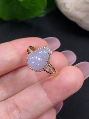 F39638814 Jadeite Gourd Inlaid Ring 18K Gold with Diamond Size 15 Total Weight Approx. 2.02g