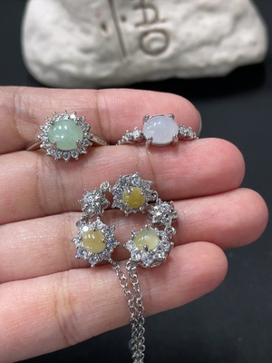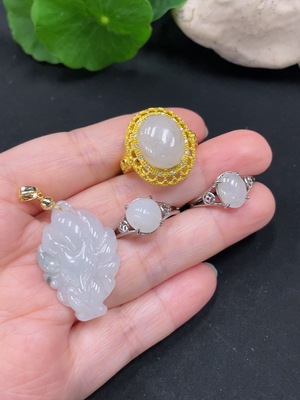 F0154694 Jadeite Pendant + Ring (Individual Pieces with Veins/Cracks, Adjustable Size, Non-Gold Setting)