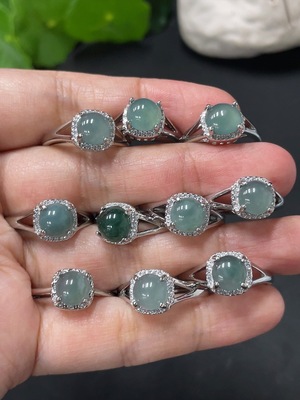 F23620276 Jadeite Cabochon Inlaid Ring Non-Gold Setting Adjustable Size