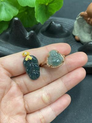 F31627945 Jadeite Pendant + Ring Sell as a Lot (Non-Gold Inlaid) (Adjustable)