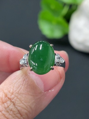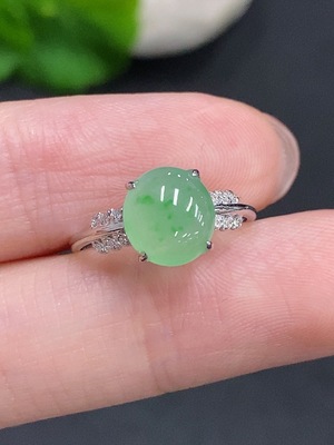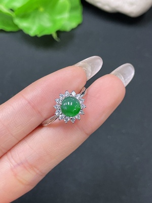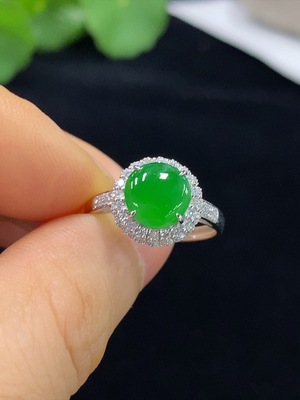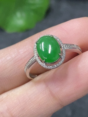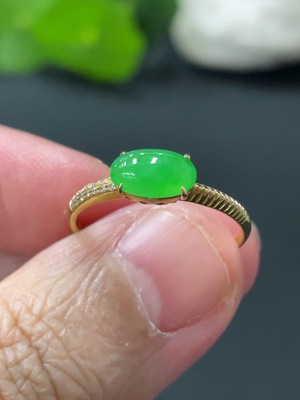 F34034366 Jadeite cabochon ring with 18k gold, total weight approx. 2.4g, size 23, accented with diamonds