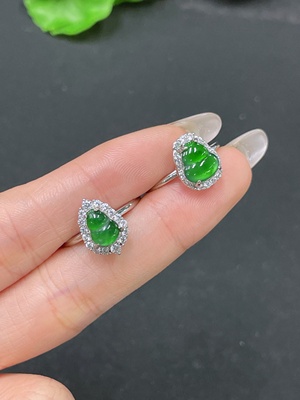 F34022102 Jadeite Gourd Inlaid Ring 18K Gold Size 13 Total Weight Approx. 2g (With Diamond Accents)