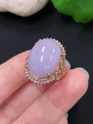 F38526848 Jadeite inlaid ring 18k with diamond size 15 total weight about 2.95g