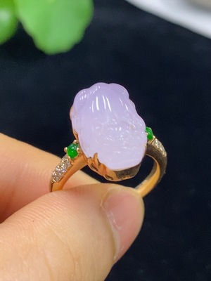F34958746 Jadeite Pixiu inlaid ring 18K gold size 13 total weight approx. 2.2g (with diamond accents)