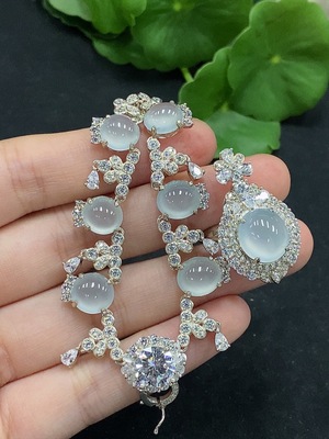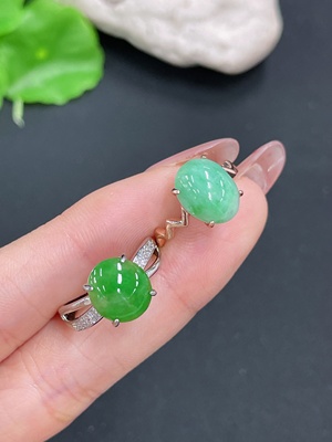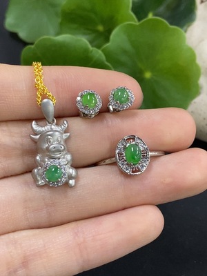 F38519820 Jadeite cabochon inlaid necklace/earrings/adjustable ring non-gold inlaid