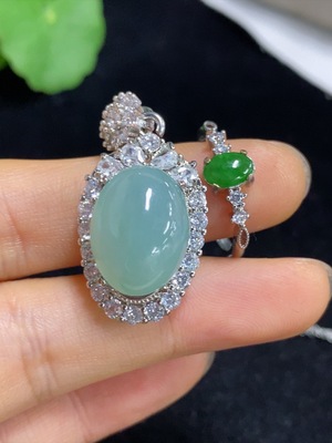 F32729282 Jadeite cabochon inlaid necklace/dual-purpose cabochon ring adjustable opening non-gold inlay