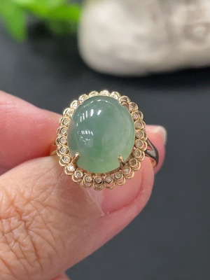 F36245296 Jadeite Cabochon Ring 18k Gold Total Weight Approx. 3.8g Size 15 No Diamond