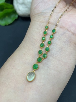 F18023800 Jadeite Cabochon Necklace with 18K Gold Setting, Total Weight Approx. 2.84g