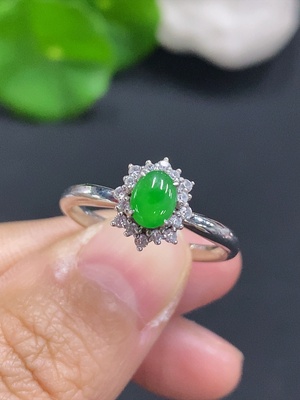 F36263959 Jadeite Cabochon Inlaid Ring Non-Gold Adjustable Total Weight Approx. 3.47g