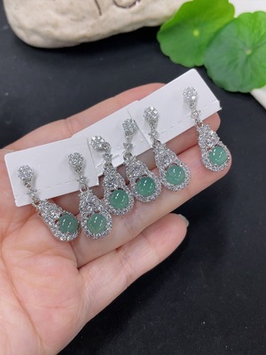 F40700297 Jadeite cabochon earrings, non-gold setting, total weight approximately 1.48g