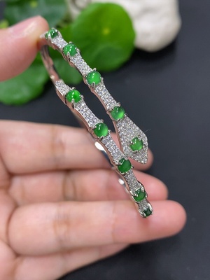 F40697198 Jadeite cabochon inlaid bracelet, non-gold inlaid, total weight approx. 11.7g