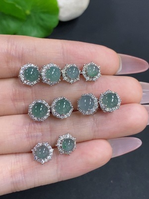 F38523832 Jadeite Cabochon Stud Earrings Sell as a Lot Non-Gold Setting