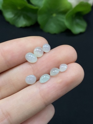 F32786745 Jadeite Cabochon Inlaid Pieces, Sell as a Lot (8 Pieces), Color Origin Undetermined