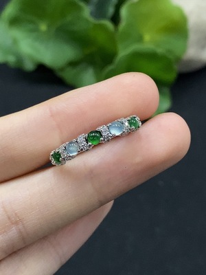 F32724044 Jadeite Cabochon Ring, Non-Gold Setting, Adjustable Size, Total Weight Approx. 1.5g, Color Origin Undetermined