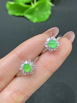 F36263954 Jadeite Cabochon Inlaid Ring Non-Gold Adjustable