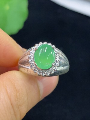 F38518728 Jadeite Cabochon Inlaid Ring Non-Gold Setting Adjustable Size Total Weight Approx. 3.07g