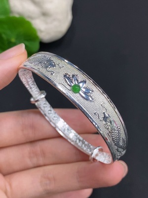 F35160871 Jadeite Cabochon Inlaid Bracelet Non-Gold Setting Adjustable Size Total Weight Approx. 15.8g