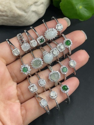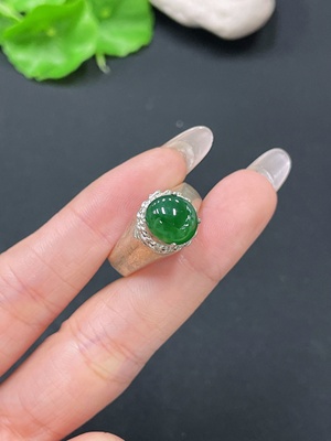 F14532586 Jadeite Cabochon Inlaid Ring (Non-Gold Setting, Adjustable Size)