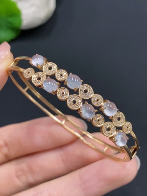 F28271871 Jadeite Cabochon Inlaid Bracelet 18k Gold Total Weight Approx. 8g Adjustable Size Diamond Accents