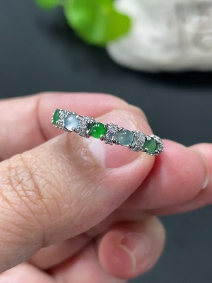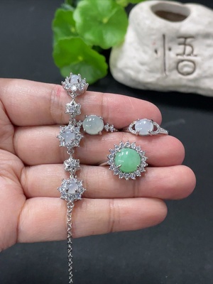 F34058073 Jadeite Cabochon Ring + Bracelet Non-Gold Setting Adjustable Size