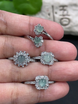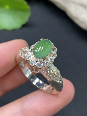 F36225170 Jadeite Cabochon Inlaid Ring Non-Gold Inlaid Adjustable Size