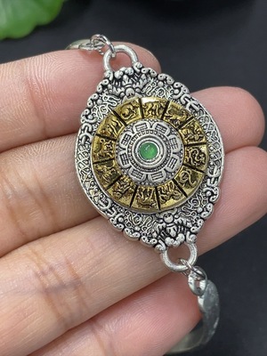 F37452272 Jadeite Cabochon Inlay Bracelet Non-Gold Inlay Total Weight Approx. 14.3g