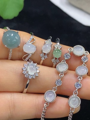F33867201 Jadeite cabochon mounted jewelry, non-gold setting, total weight approx. 14.3g